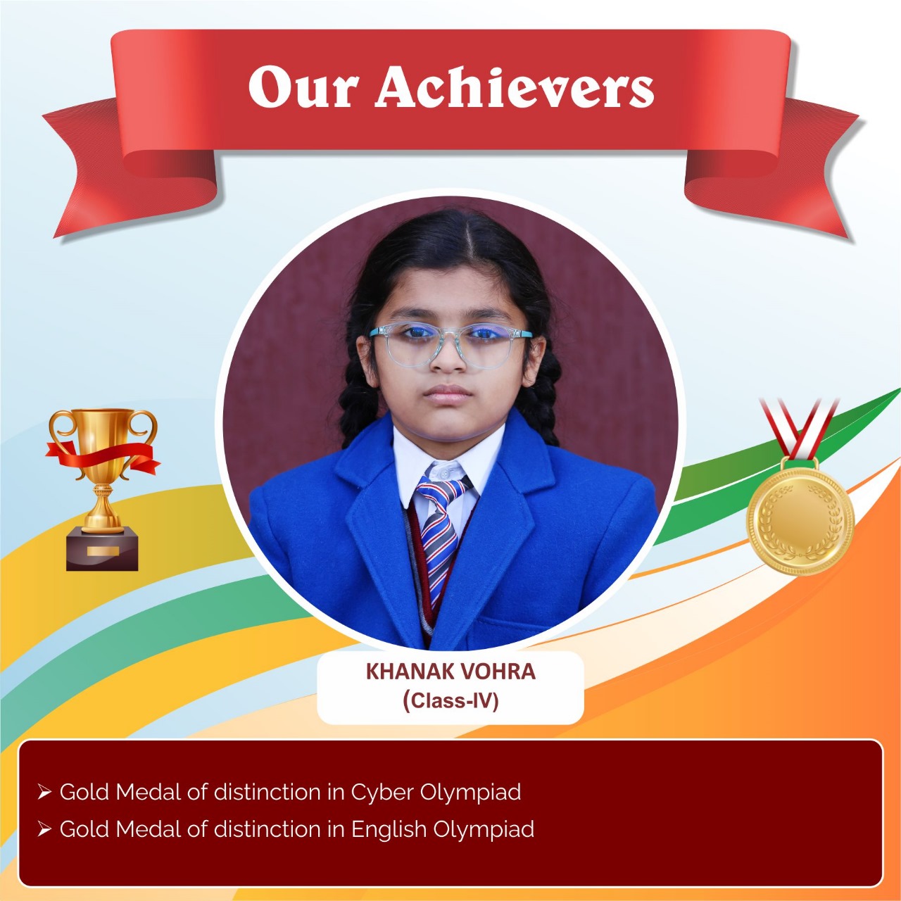 Khanak Vohra won the Gold medal in Cyber & English Olympiad.